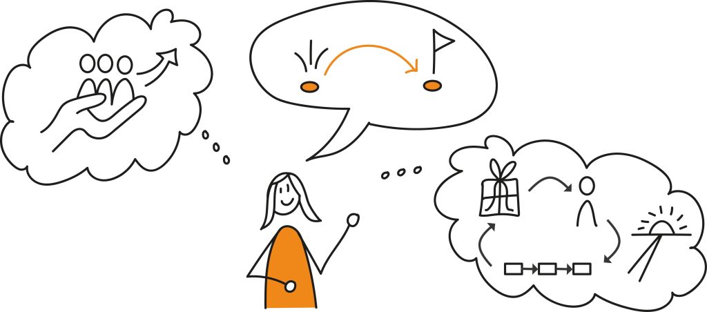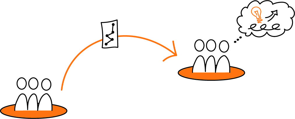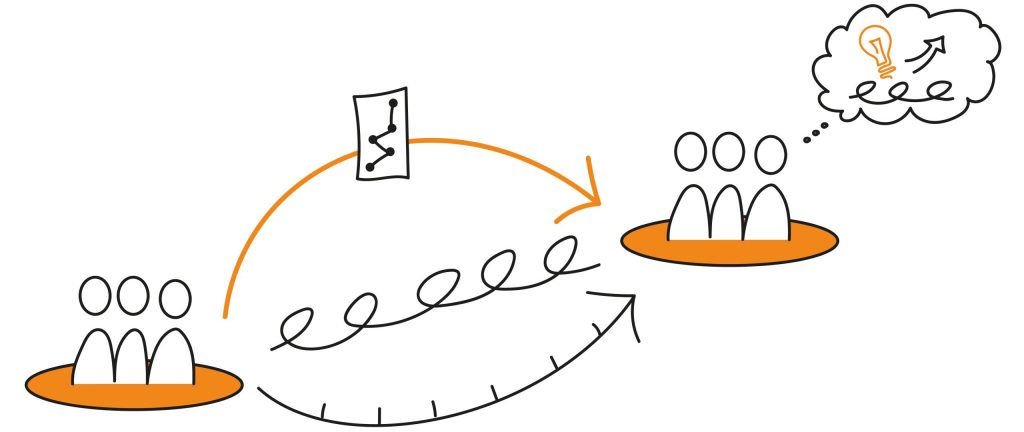 Als deze voor iedereen helder is, is het tijd om samen de weg ernaar toe te bepalen. Met het team bouwen we aan een concreet stappenplan om van de huidige situatie naar onze stip op de horizon te komen.